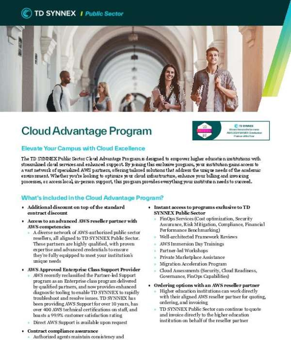 🏫 Cloud costs slowing down your school's innovation momentum? Download the solution brief, "Cloud Advantage Program," to see how the AWS Cloud Advantage Program helps you simplify procurement and gain better support. @Amazon Web Services